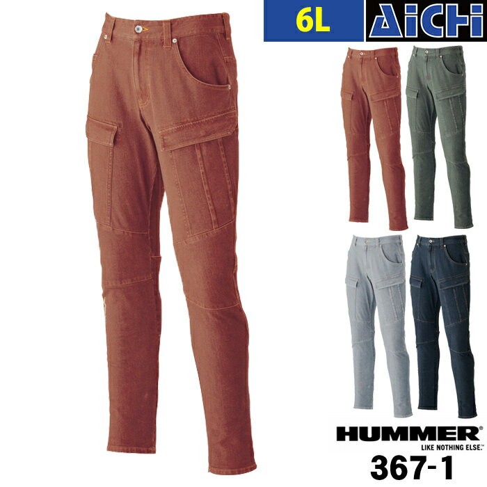 HUMMER ハマー アタックベース 作業服 367-1 W ストレッチ カラーデニム カーゴ オールシーズン 6L | カーゴパンツ デニム ズボン パンツ スリム 細身 赤 緑 グレー 紺 大きいサイズ