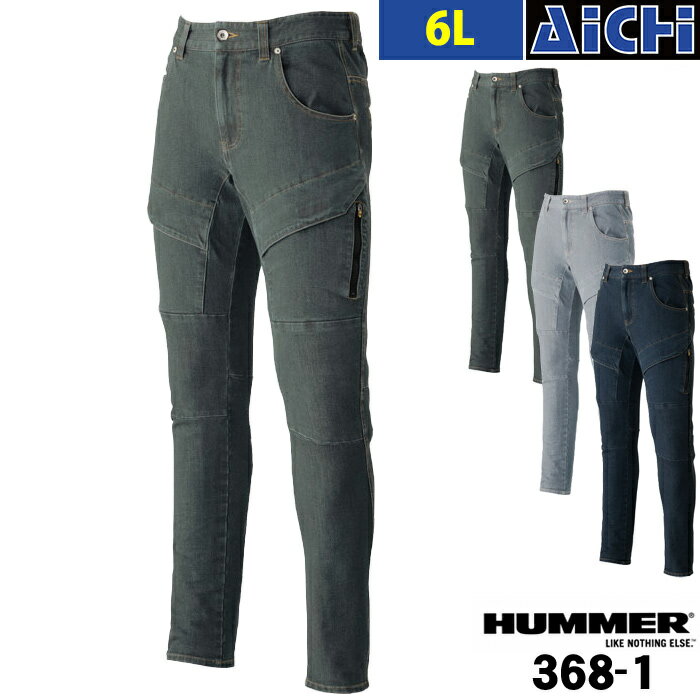 HUMMER ハマー アタックベース 作業服 368-1 W ストレッチ カラーデニム スリムパンツ オールシーズン 6L | カーゴパンツ デニム ズボン パンツ スリム 細身 緑 グレー 紺 大きいサイズ