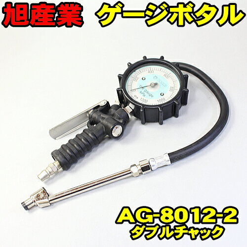 タイヤゲージ ゲージボタル AG-8012-2 ダブルチャック 送料無料 旭産業 エアーゲージ トラック対応モデル 発光する大型メーター 空気圧 測定 タイヤ交換 プロ用