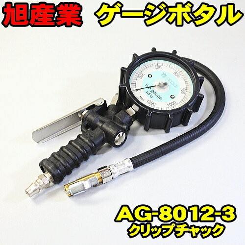 タイヤゲージ ゲージボタル AG-8012-3 クリップチャック 送料無料 旭産業 エアーゲージ トラック対応モデル 発光する大型メーター 空気圧 測定 タイヤ交換 プロ用
