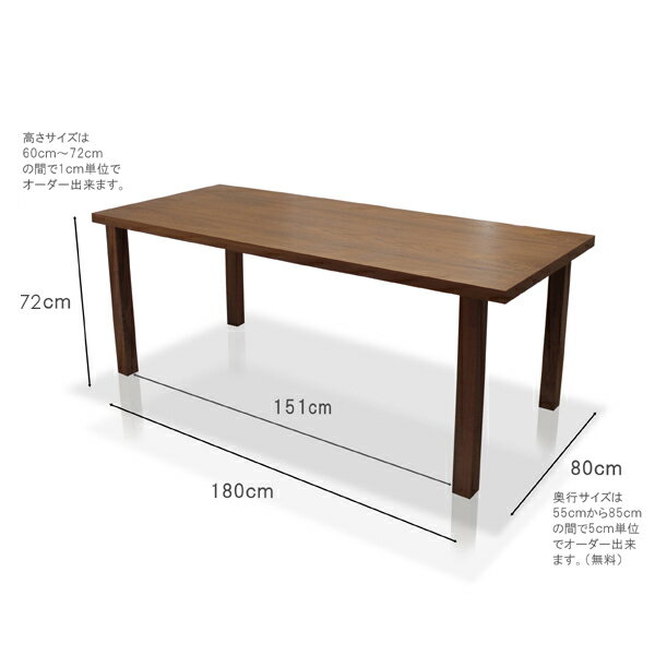 商品名| RV セミオーダー デスクサイズ| 幅 180 奥行55〜80高さ60〜72cmカラー| ブラウン色 / ウォールナット生産国| 国産 日本製主素材| ウォールナット北欧家具 奥行 高さ オーダー 可能(有償)テレワーク※天板は無垢ではございません。