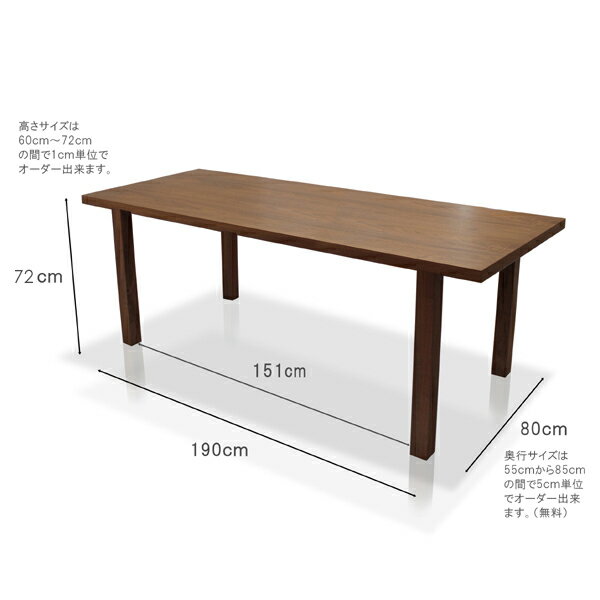 商品名| RV セミオーダー デスクサイズ| 幅 190 奥行55〜80高さ60〜72cmカラー| ブラウン色 / ウォールナット生産国| 国産 日本製主素材| ウォールナット北欧家具 奥行 高さ オーダー 可能(有償)テレワーク※天板は無垢ではございません。