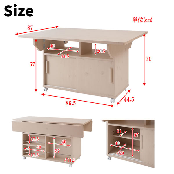 バタフライカウンターテーブル 幅89.5cm ホワイトウォッシュ色 カウンター テーブル カウンターテーブル 台所 おしゃれ 白 ホワイト 完成品 キャスター付き 日本製 キッチンストッカー 食品庫|キッチン収納 折り畳みテーブル おりたたみテーブル