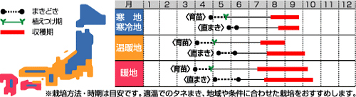 ・タネまき・植えつけ 遅霜の心配がなくなってからなら直まきもできますが、一般には育苗をします。